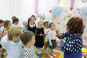 К киндерятам в гости пришла добрая и любознательная Почемучка, которая вместе с ребятами играла, загадывала загадки и делилась своим настроением. Дети с удовольствием участвовали в веселых конкурсах, пели и танцевали.